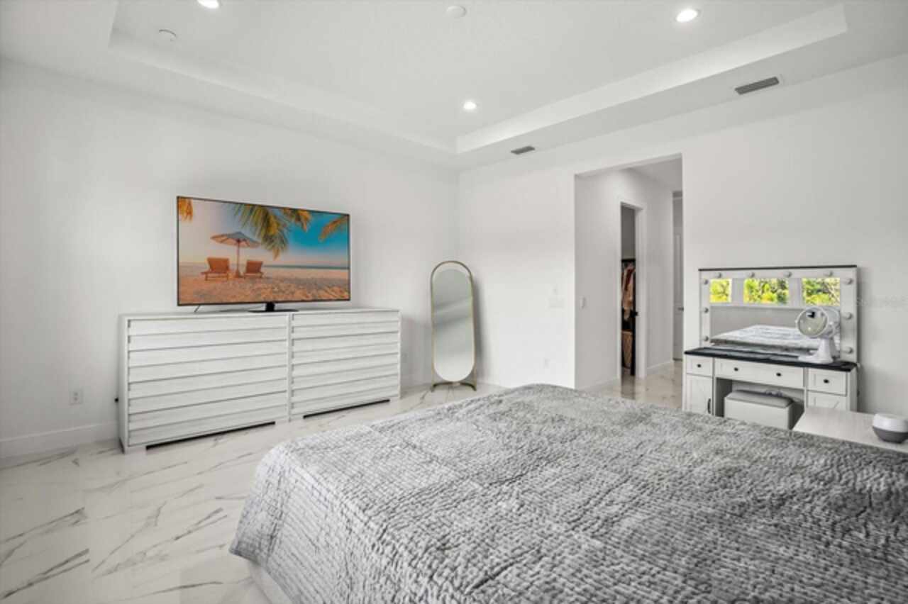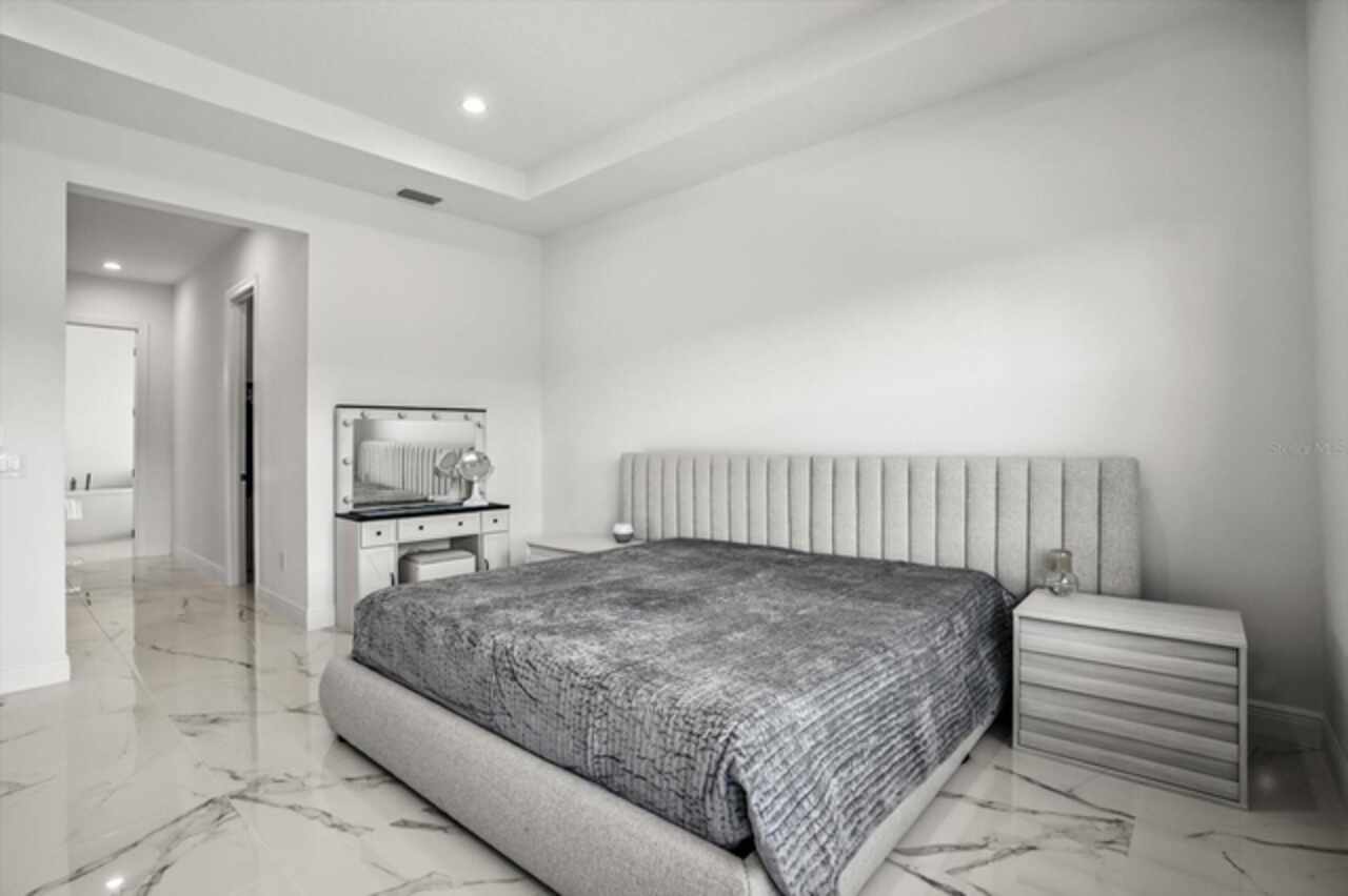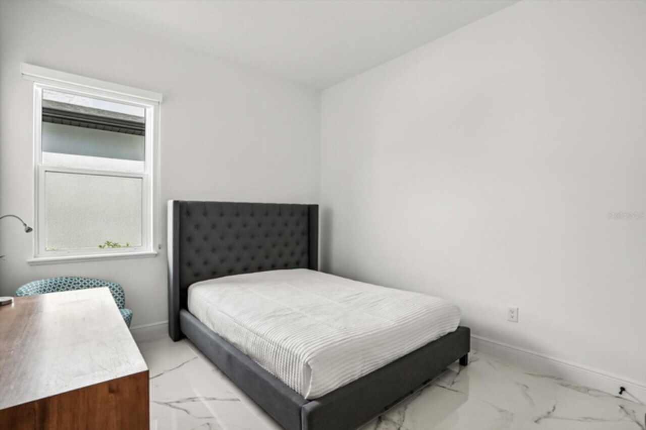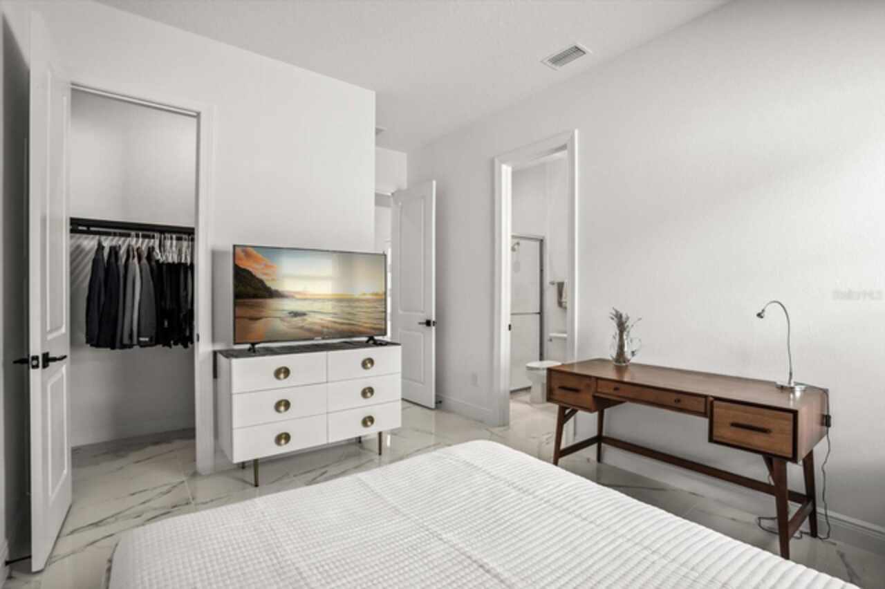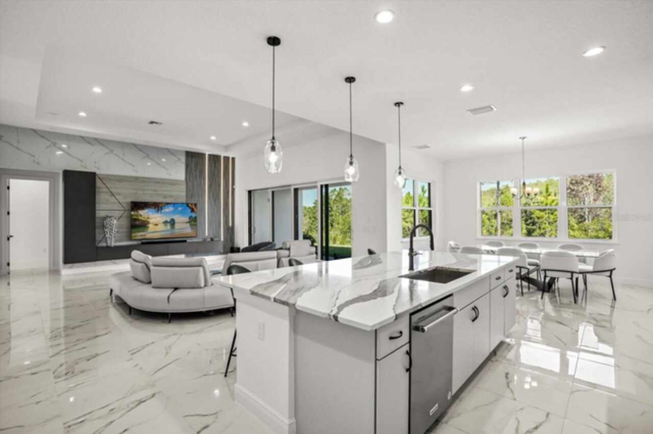 Welcome to the Bordeaux Modern, a striking contemporary one-story residence located in the private community of Laurel Pointe, Toll Brother’s new and gated neighborhood with only 124 homes. Completely sold out with construction complete, this home represents a great opportunity to own in one of Lake Nona’s most sought-after communities. This home is exceptionally rare—one of only two single-story Bordeaux floor plans in the 70' Collage Collection across the entire Laurel Pointe community. This thoughtfully designed four bedroom, four bathroom home spans nearly 3, 000 square feet of luxury living space on a generous .23-acre lot. The bold modern elevation and clean architectural lines make a stunning first impression. Inside, soaring ceilings, sleek tile floors, and an open-concept design create a perfect balance of style and comfort. The heart of the home features a chef’s kitchen with an oversized waterfall island, walk-in pantry, custom cabinetry, and premium appliances, flowing seamlessly into the casual dining space and expansive great room with a dramatic feature wall. Walls of glass frame the private conservation view and open to the covered lanai, offering the ideal setting for indoor-outdoor entertaining. The oversized backyard provides plenty of room to design your own pool and backyard oasis. The primary suite is a serene retreat with tray ceilings, large windows overlooking the conservation, a spa-inspired bathroom with dual vanities, a free-standing tub, an oversized shower with designer tile, and a spacious walk-in closet. Three additional bedrooms each include walk-in closets and access to full baths, while a versatile flex room provides the perfect space for a home office, media lounge, or playroom. Additional highlights include a split three car garage, and energy-efficient construction with designer finishes throughout. As a Laurel Pointe homeowner, you will also enjoy full access to Laureate Park’s amenities, including LP Fit fitness center, resort-style pools, playgrounds, and miles of trails. Lake Nona’s Town Center, Medical City, and top-rated schools are just minutes away.