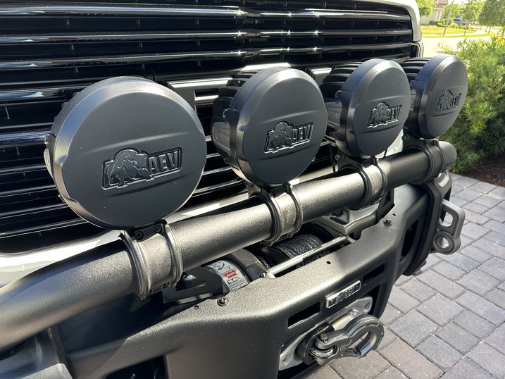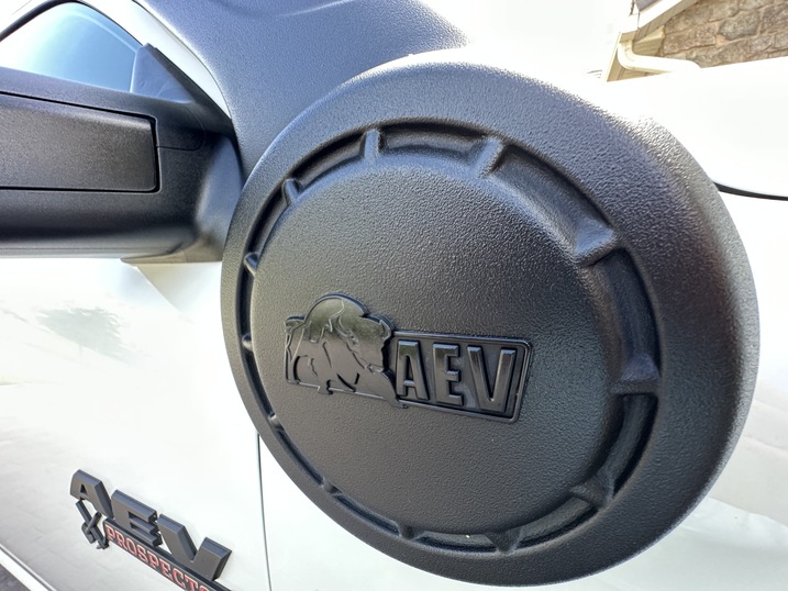 From there, AEV offers a ton of options to customize the Prospector XL into exactly the vehicle you need. The built-for-SEMA test truck that we spent time with had just about every box checked. Starting with an AEV brush guard, Warn 16.5ti heavy-duty winch, and four of AEV's awesome new 7-inch LEV auxiliary lights up front to the AEV bed rack and vertical spare tire mount in the bed, this thing is loaded. Other options checked off were the AEV rear bumper lighting package, AMP Research Power Steps, AEV leather seating upgrade, an AEV snorkel with Ram air, and AEV's painted appearance package. Not on our tester because of the bed rack, but also available, are a few Tonneau cover options and AEV differential covers. Speaking of the details, AEV offers splash guards, light covers, and a front license plate kit for those who live in more restrictive states that require these items to be street legal. A fully loaded AEV Prospector XL with all of the boxes checked will cost around $30,000 more than the donor truck.
