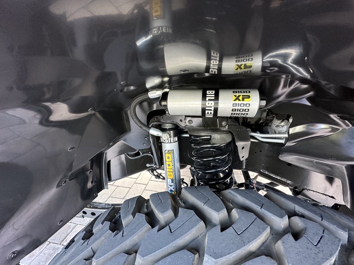 Even with 41-inch tires, the Prospector XL drooped and stuffed those huge tires, and not once did we experience any rubbing. That's truly amazing, considering the conservative lift height, showing just how well thought out the suspension system is in partnership with the flares. Those big 2.65-inch piston Bilstein shocks had zero issues controlling all that mass, regardless of whether the truck was crawling over obstacles at slow speed or hitting bumps at high speed. The truth is that the Prospector XL was comfortable and easy to drive on the trail, with a point-and-shoot character befitting of something rolling on 41-inch tires.