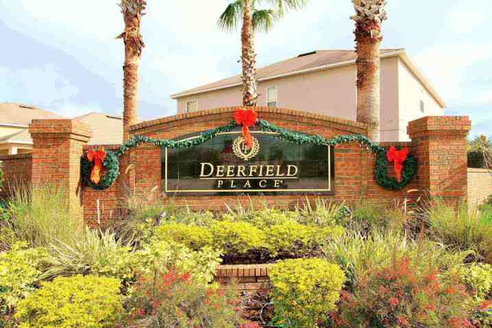 Deerfield Place is located on Daniels Road one third of a mile South of The Florida Turnpike. The main entrance is directly across from the Daniels Landing townhome community. There is a Northern entrance on Beard Road but only the main entrance has community signs.