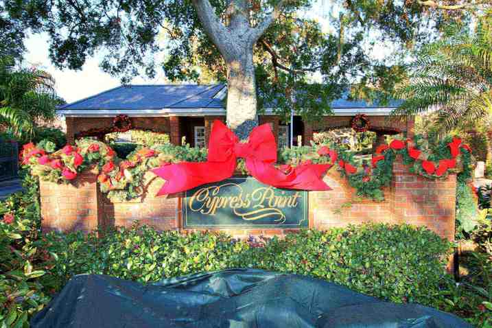 In this area there just happens to be a lot of other beautiful lakefront communities. From the time you pull up to its’ oversized gated entry you know you have arrived someplace special. The name Cypress Point is on a sign but the sign is small as if to suggest you should know where you are if you have arrived.