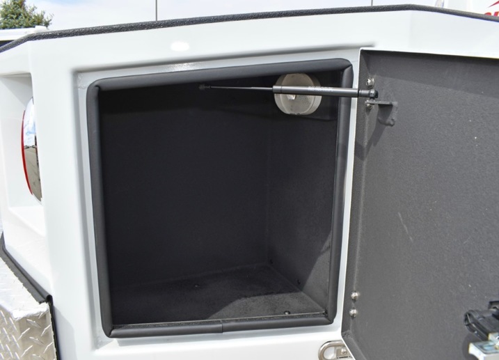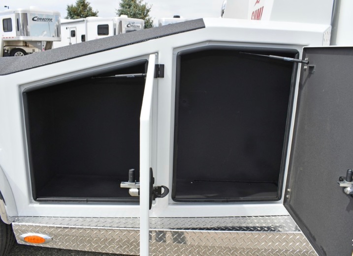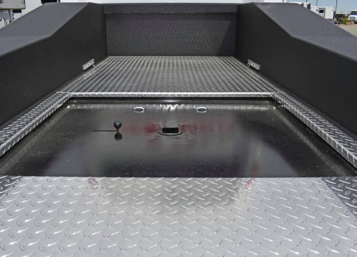 In the back is a specially designed and built utility bed with lockable storage compartments. It can be configured with a 5th-wheel or gooseneck hitches. There is also a 20,000 lbs rear conventional hitch.