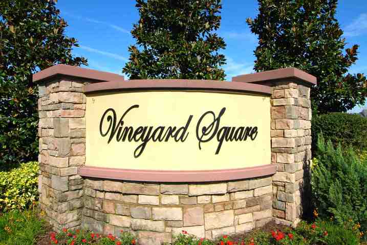 The Vineyards is a KB Homes community located on the West side of Ficquette Road 3.7 miles South of The Daniel Webster Western Beltway 429 Toll Road. The entrance to the Vineyards is easy to notice. It is a 2-lane entrance proudly proclaiming the name with two large community signs one on each side of the entrance. There is also a large V on a column in the meridian between the lanes.  Upon entering the community, you will see that there are large ponds, a community pool and a children’s playground. The community is relatively new. The first homes were built in 2013. There are both single family homes and townhomes in The Vineyards and the prices range from just over $200,000 to $500,000. This is a very attractive community and when you drive through it you will notice that it seems easy and not cluttered. The large open areas really help the aesthetics.