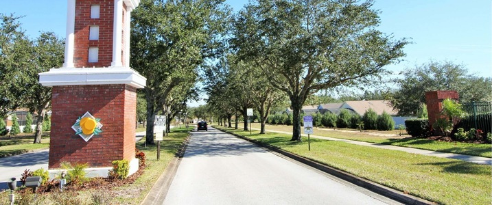 Orange Tree Clermont Florida is a non-gated community. Orange Tree is located 7 miles west of Disney’s Magic Kingdom Park. The entrances to this community are on the east side of state road 27. They are clearly and beautifully marked with red brick walls and a large sign on both sides of the entrance.