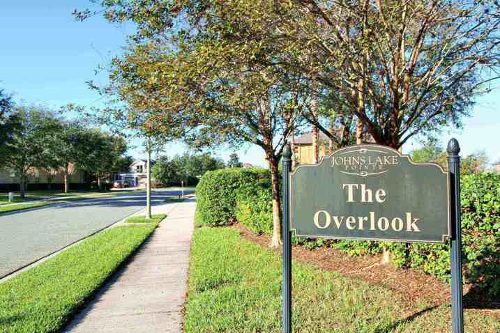 The Overlook starts on John’s Lake Pointe Blvd. just North of the roundabout and clubhouse. The community has three sections and the Overlook is the most prestigious.