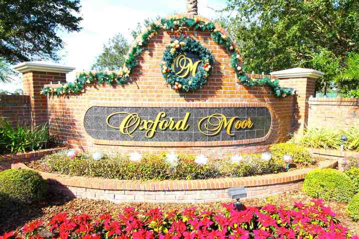 Oxford Moor is located on the North side of Winter Garden Vineland Road 3.3 miles South of The Daniel Webster 429 and West of Lake Butler. The community is comprised of approximately 85 homes. The community was started in 2002 and the homes range in size from 3,258 sf. to 7,000 sf. of living space which does not include garages. The community does not have a community pool but does have tennis courts and a children’s play area just to the West side of the entrance. From the entrance, you can see the large pond and its fountains in the center of the community. This is a beautiful community with some very nice homes. Several of the homes have sold for over $1,000,000. The entrance is grand, secure and very attractive. There is only one entrance and exit. From it you can turn East or West.