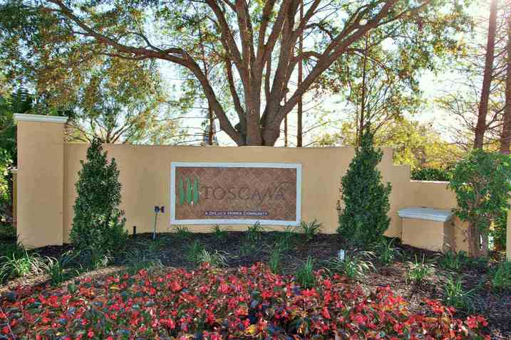 Toscana’s main entrance is located on the South side of Wallace Rd. and it has another entrance on Turkey Lake Rd. The entrance on Turkey Lake Rd. is the fastest way to Lakeside Toscana.