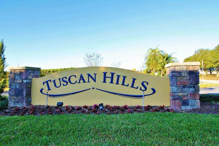Tuscan Hills is a resort community approximately 4 miles from Disney. This gated community has only one entrance located on the south side of Florence Villa Grove Rd. about 300 feet east of state road 27. The entrance sign is small and discreet.